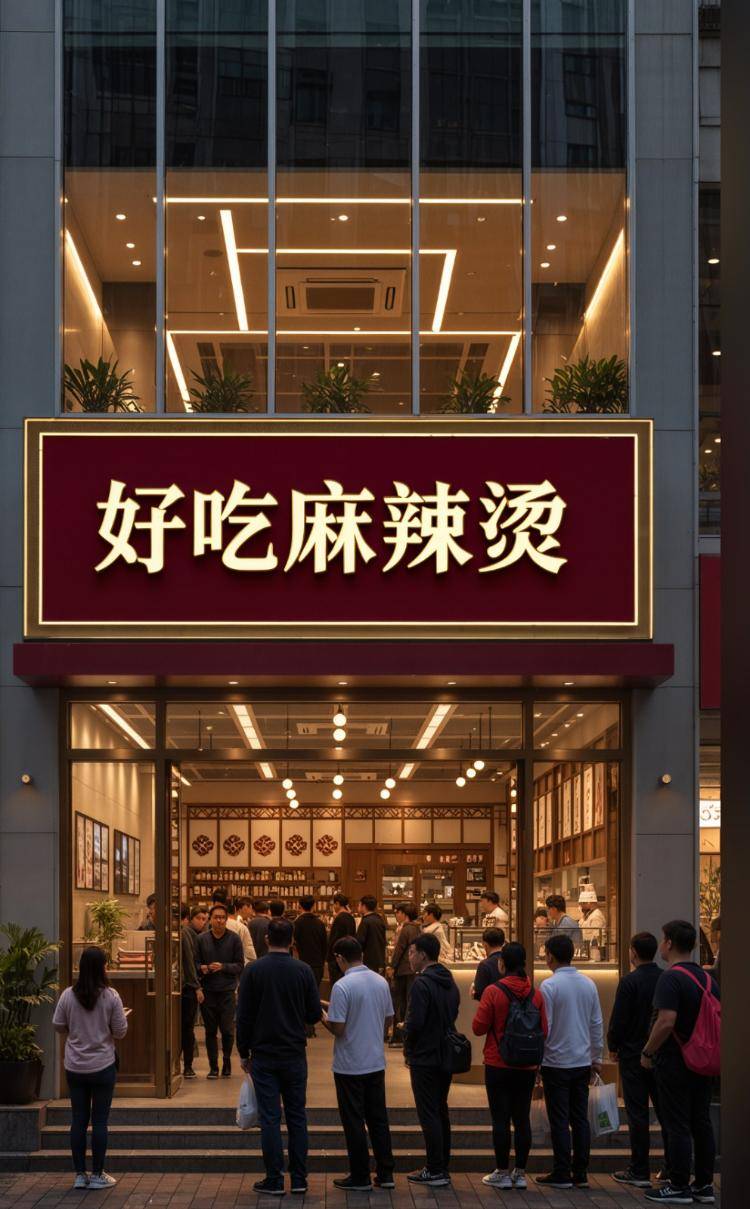 另一种更快捷更低成本方式是,自己使用相关软件进行制作。在实测中,记者在某AI生图APP中输入“餐饮店门头”“招牌醒目”“顾客排队”“好吃麻辣烫”等关键词,不到1分钟就生成了一张精美的门店图。